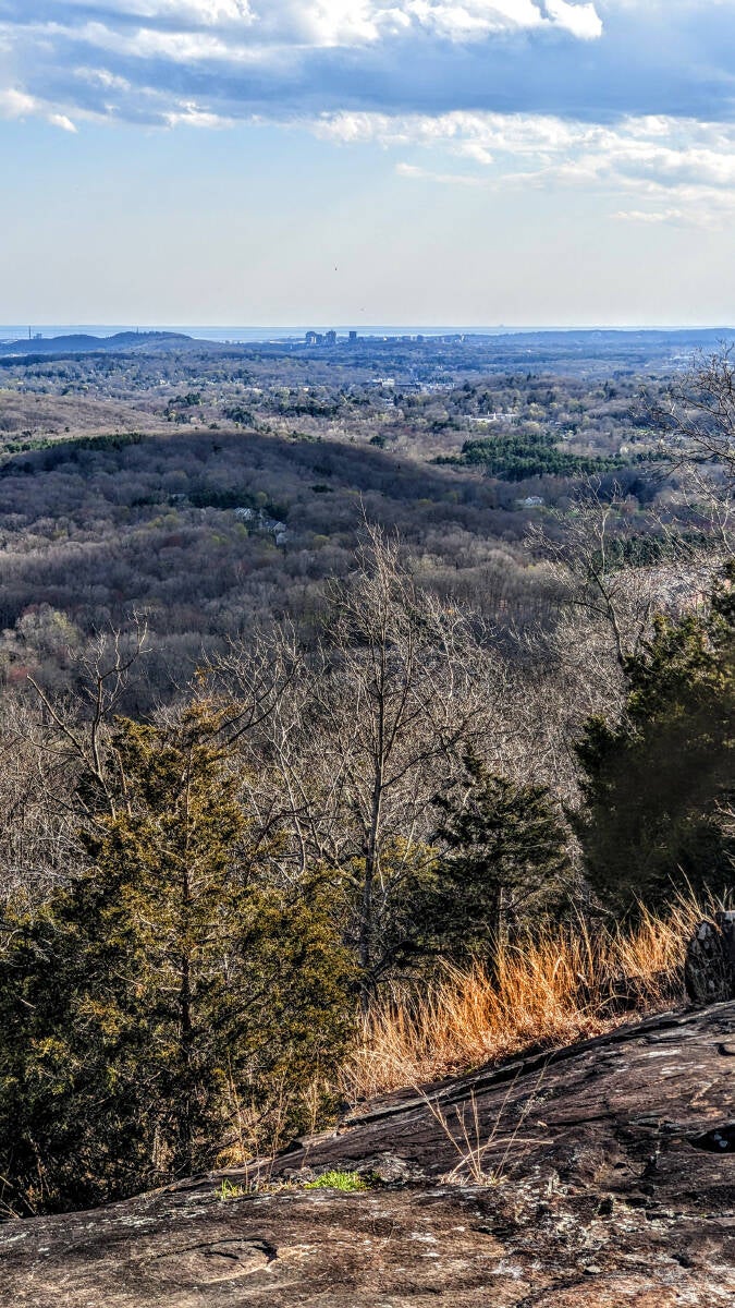 View from the Giant's Right Leg, Sleeping Giant State Park, Hamden, Connecticut. April 15, 2024, 4:39 PM.