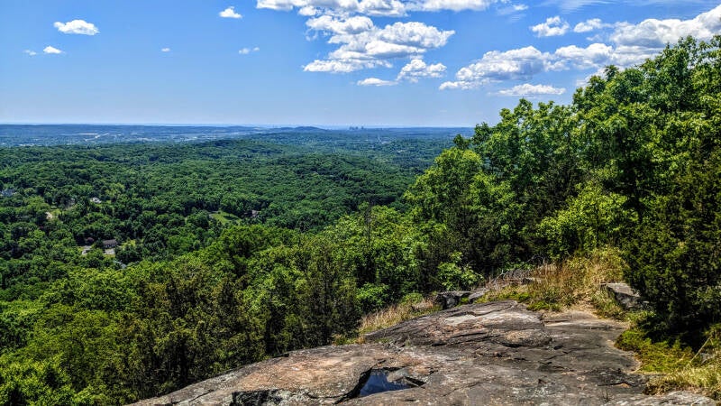 The Giant's Head, Quinnipiac University, West Rock, York Mountain, Mad Mare Mountain and the village of Mount Carmel from the Giant's Chest, Sleeping Giant State Park, Hamden, Connecticut. May 31, 2024, 11:26 AM.