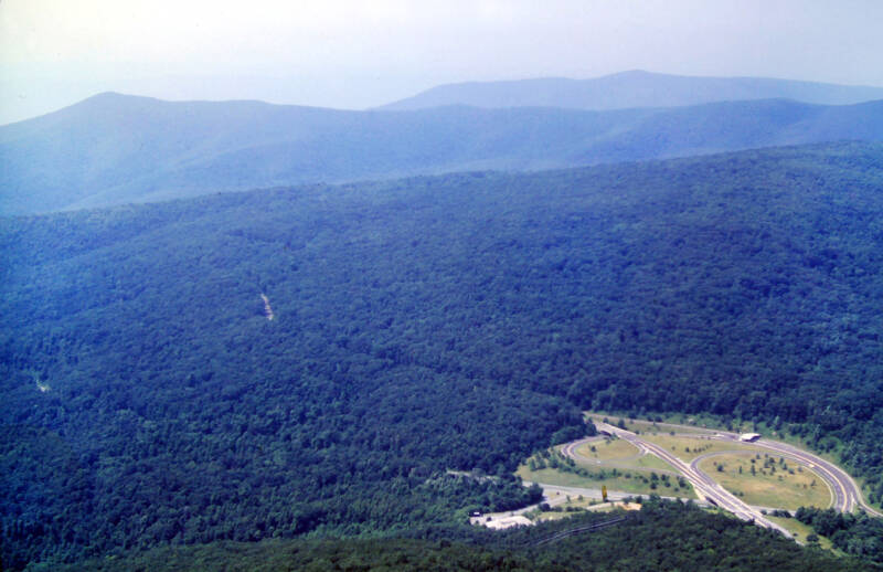 The Appalachian Trail brushed close to Skyline Drive several times and crossed it once along its long descent to Gravel Springs Gap.