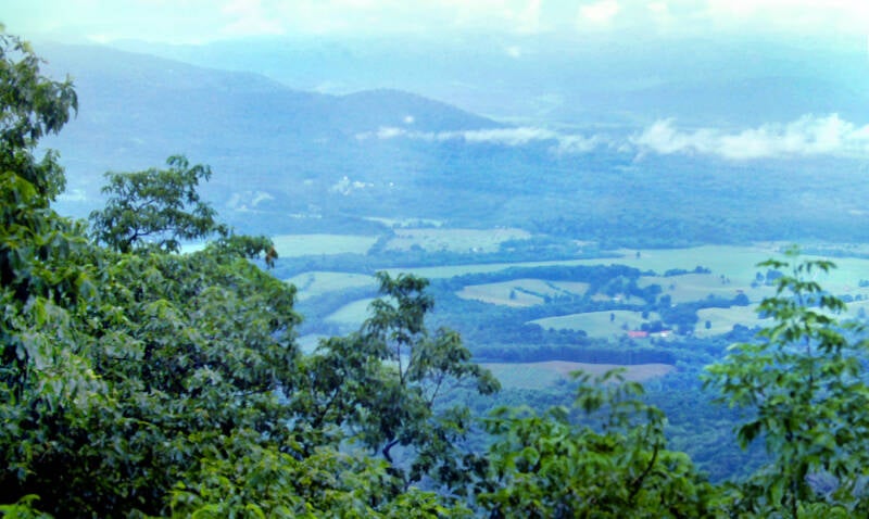 Massanutten Mountain was actually a mountain range. From this angle you could clearly see two of its parallel ridges and that there was a good-sized valley in between.